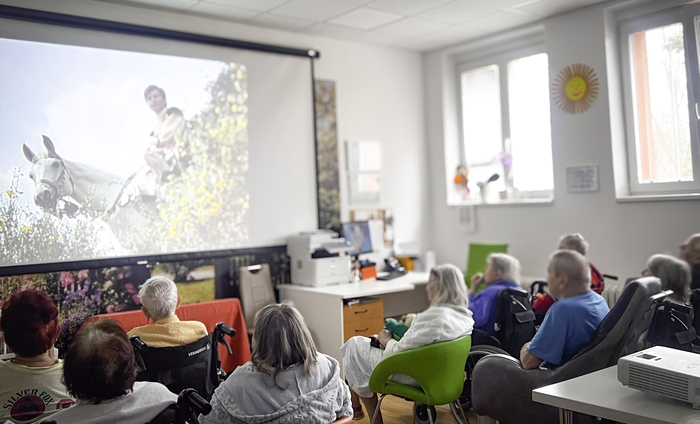 Do budoucna chceme tuto formu práce dále rozvíjet. Připravujeme vlastní krátké záznamy zaměřené na klidné přírodní prostředí, procházky krajinou, zvuky vody, lesa nebo venkovského prostředí. Tyto projekce chceme kombinovat s jednoduchými hmatovými podněty, například při práci s přírodními materiály nebo při skupinové aktivizaci. Cílem je vytvořit podmínky, které pomohou pacientům lépe se orientovat, zklidnit se, soustředit se a zapojit do léčebného programu.